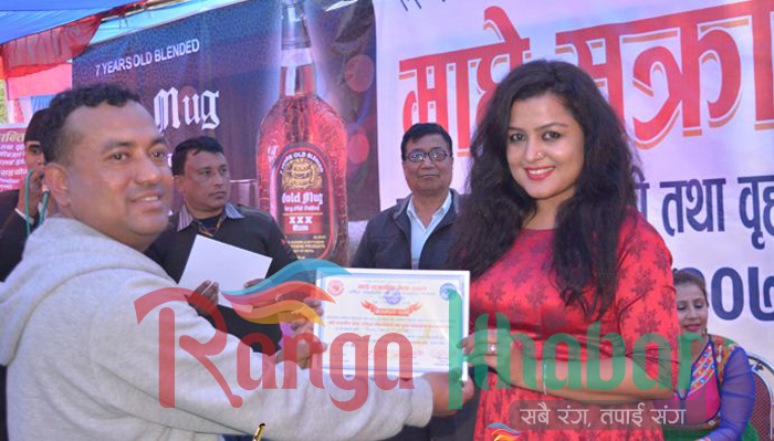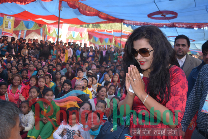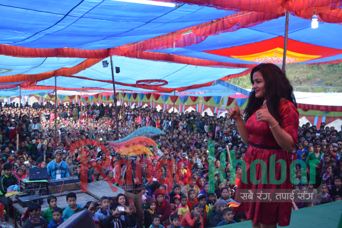 रंग खबर, गुल्मी । गुल्मीको रिडी बजारमा आयोजित माघे संघ्रान्ती मेलाको गत सोमबार समापन हुँदै थियो । सो समापन समारोहमा नेपालकी चर्चित अभिनेत्री रेखा थापा आउने भनिएपछि त्यँहा आसपासका युवा, अधवैंशे र बालबालिका सबै उत्साहित देखिन्थे । कार्यक्रम शुरु भएदेखि नै सहभागी हजारौं दर्शकहरुले ‘रेखा थापा, रेखा थापा’ भन्दै चिच्याइरहेका थिए । विशेष गरी महिलाको क्रेज देखेर रेखा आफै पनि दंग देखिन्थिइन् ।
