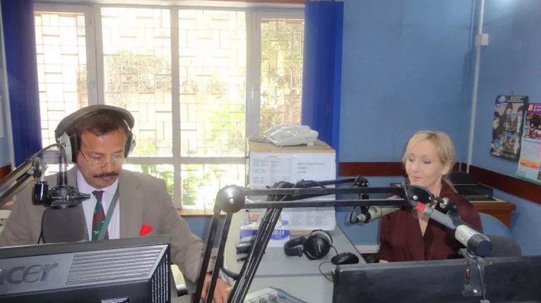 हाम्रो स्टुडियोमा विश्वप्रसिद्ध लेखिका जेके रोलिङ आउनुभएको छ। हामीलाई जुन अन्तर्वार्ताका लागि समय दिनुभएको छ त्यसको लागि उहाँलाई धेरै धेरै धन्यवाद छ। हामीले यो अवसरलाई अहोभाग्य ठानेका छौँ। तपाईँलाई नेपालमा स्वागत छ। बिएफबिएस गोर्खा रेडियोमा स्वागत छ।