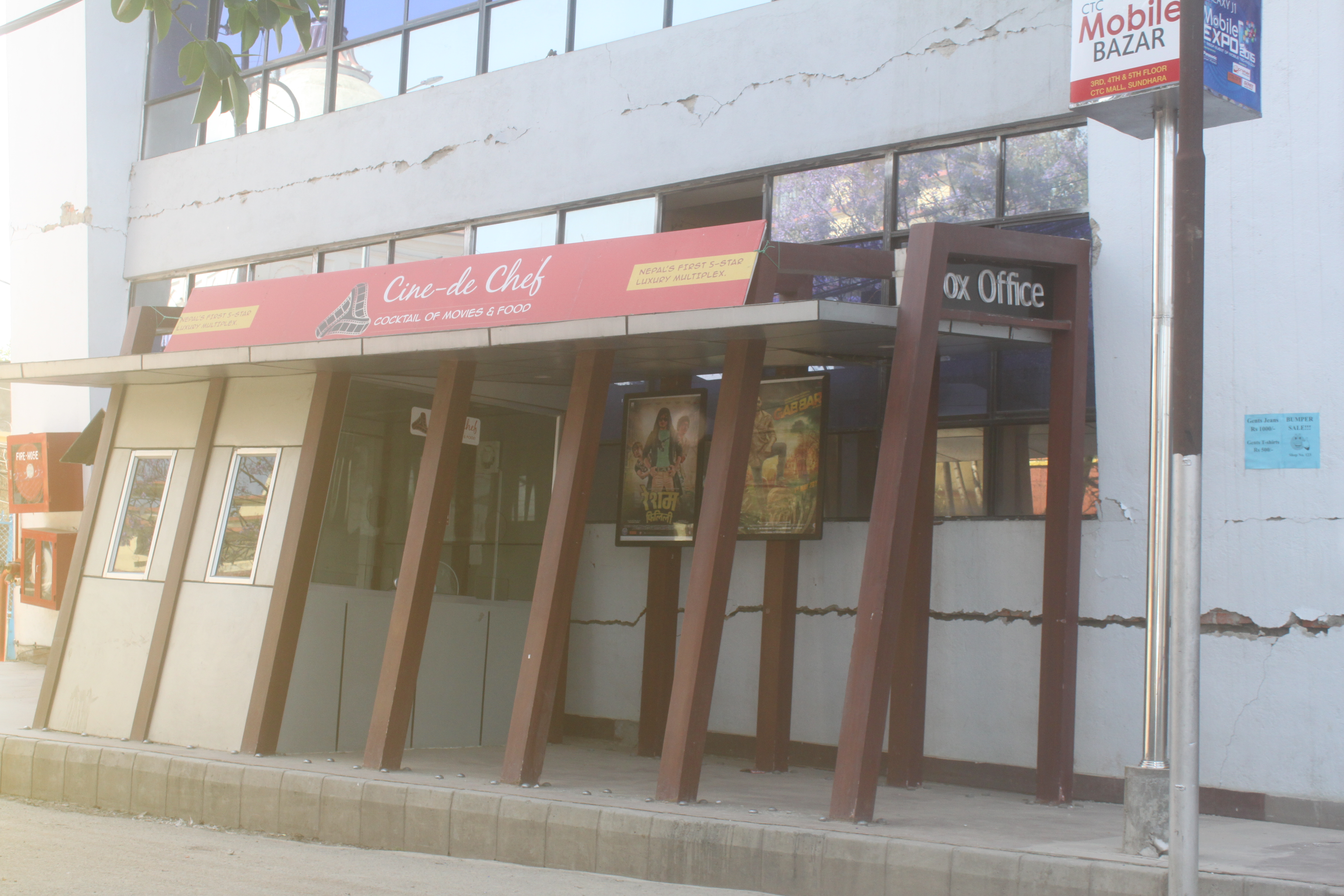 त्यस दिनयता उपत्यकाका कुनै पनि हल सञ्चालनमा छैनन् । हलमा कोही दर्शक जाने अवस्था छैन । हल प्रदर्शक तथा वितरकहरूको संस्था नेपाल चलचित्र संघका महासचिव मधुसुदन प्रधान उपत्यकाका ७५ प्रतिशत हलमा भूकम्पले क्षति पु¥याएको बताउँछन् । उनका अनुसार सीटीसी मलको सिने द चिफ, केएल टावरको एफक्यूब, सिटी सेन्टरको बिग मुभिज, सिभिल मलको क्यूएफएक्स, राइजिङ मलको क्यूज, अष्टनारायण, गंगा, कलंकी, गुण सिनेमा बाराही, पुष्पाञ्जली, सिद्धार्थलगायत मल्टिप्लेक्ससहित ठूला–साना हलमा क्षति पुगेको छ । ‘कतै हलका भित्ता र सिलिङ चर्किएका छन् त कतै साउन्ड सिस्टम बिग्रिएको छ,’ उनले भने । इन्जिनियरलाई निरीक्षण गराएर मर्मत गरेपछि मात्र हलहरू सञ्चालनमा आउने उनले बताए । ‘अब पुनर्निर्माण गर्दा भूकम्प प्रतिरोधात्मक बनाउन सबैलाई आग्रह गर्छौं,’ उनले भने ।