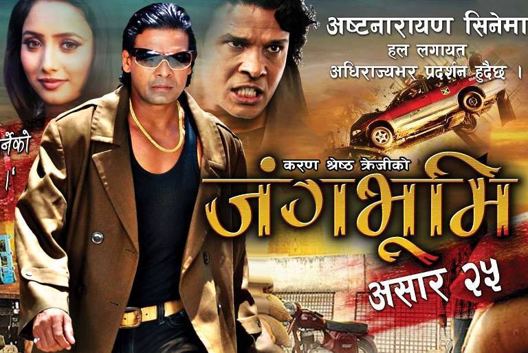 संयोग कस्तो भएछ भने यी दुवै फिल्ममा साउथका कलाकारले अभिनय गरेका छन् । ‘जंगभूमि’ मा दक्षिण भारतीय फिल्मीकी चर्चित हिरोइन रानी चटर्जीलाई र विराज भट्ट मुख्य भूमिकामा देखिँदैछन् । फिल्ममा एउटी नारीको संघर्षलाई चित्रण गरिएको छ । रिच इन्टरटेनमेन्टको ब्यानरमा निर्मित यस चलचित्रको प्रस्तुतकर्ता करण श्रेष्ठ ‘क्रेजी’ हुन् । करणका अनुसार ‘जंगभूमि’ अधिकांश सिंगल थिएटर र केही मल्टिप्लेक्स हलमा लाग्दैछ । करणले भने, ‘भूकम्पपछि नेपाली फिल्म रिलिज नभइरहेको अवस्थामा ‘जंगभूमि’ रिलिज गर्दैछु । दर्शकले यो फिल्म रुचाउँछन् भन्ने अपेक्षा गरेको छु ।’
