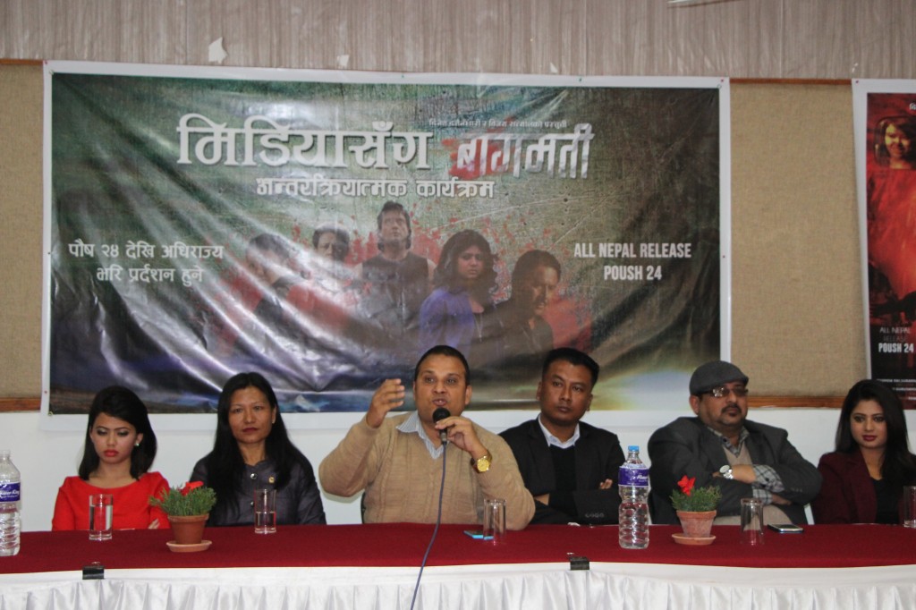 रंग खबर, काठमाण्डौं । महानायक राजेश हमाल र एक्सन किंग शिव श्रेष्ठले एकसाथ अभिनय गरेको प्रतिक्षित फिल्म‘बागमती’ लाई सस्पेन्स फिल्म भन्दै यसको कथावस्तु सार्वजनिक गरिएको छैन् । आइतवार राजधानीमा आयोजित प्रेस मिटमा यसका कलाकारले फिल्ममा रहेको आफ्नो भुमिकाबारे खुलाउन चाहेनन् ।