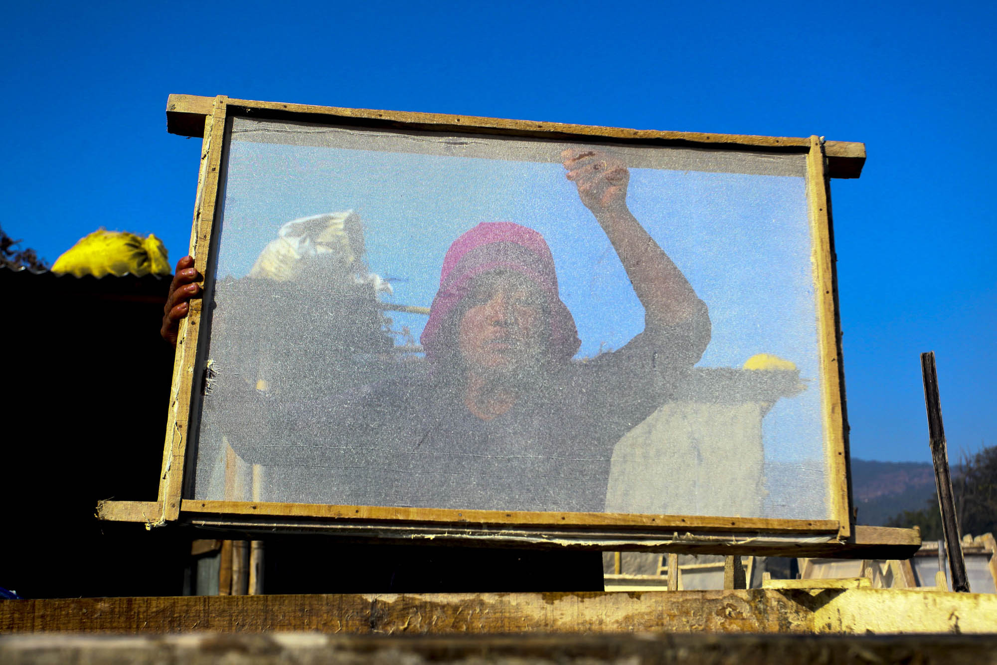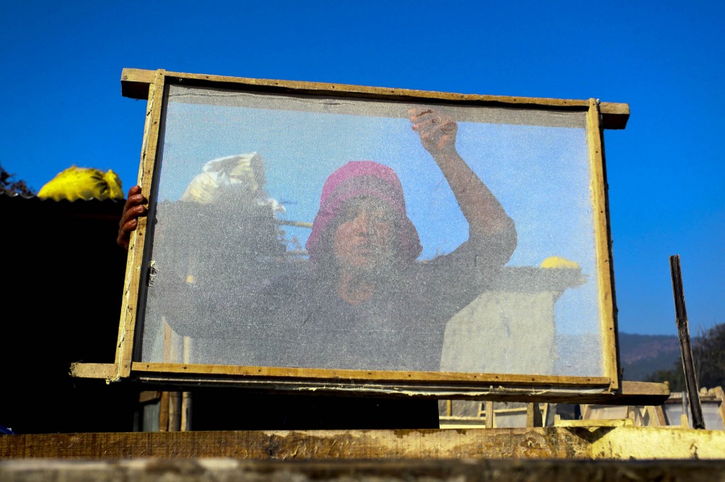 साँखुमा एक महिला नेपाली कागजको फ्रेम बोक्दै गरेको प्रताप थापाको यो तस्वीर तेस्रो भएको छ ।