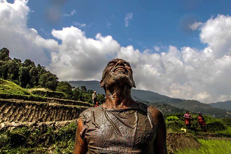 रोपाइका क्रममा हिलोले लतपतिएका एक युवकको तस्वीर सुलश भक्त श्रेष्ठको हो । यो तस्वीर नेपाल स्माइल बिधामा तेस्रो भएको छ ।