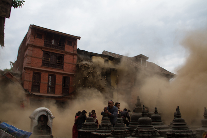 यो विधामा नभेश चित्रकारको तस्वीर पहिलो भएको छ । विनाशकारी भूकम्पले भत्किएको भग्नावशेषले थिचिएको व्यक्तिको तस्वीर छ ।