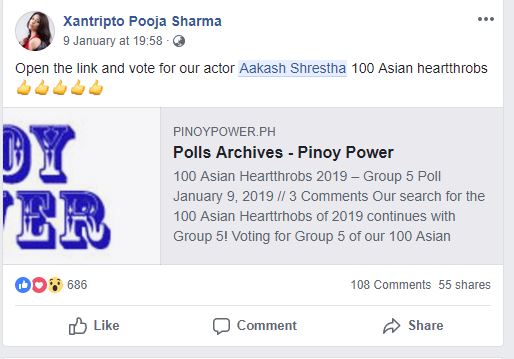 ह्याण्डसम पुरुषको सूचिमा परेपछि पूजाले मागिन आकाशका लागि भोट – भिडियो हेर्नुस