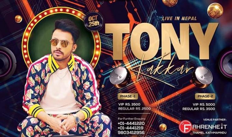 रंगखबर, काठमाडौँ – भारतीय गायक टोनी कक्करको स्थगित नेपाल कार्यक्रम पुन: तय भएको छ । सि.एन.आई इभेन्ट्सले २५ अक्टुबरमा टोनीलाई क्लब फरेनहाइटमा उतार्ने छ ।
