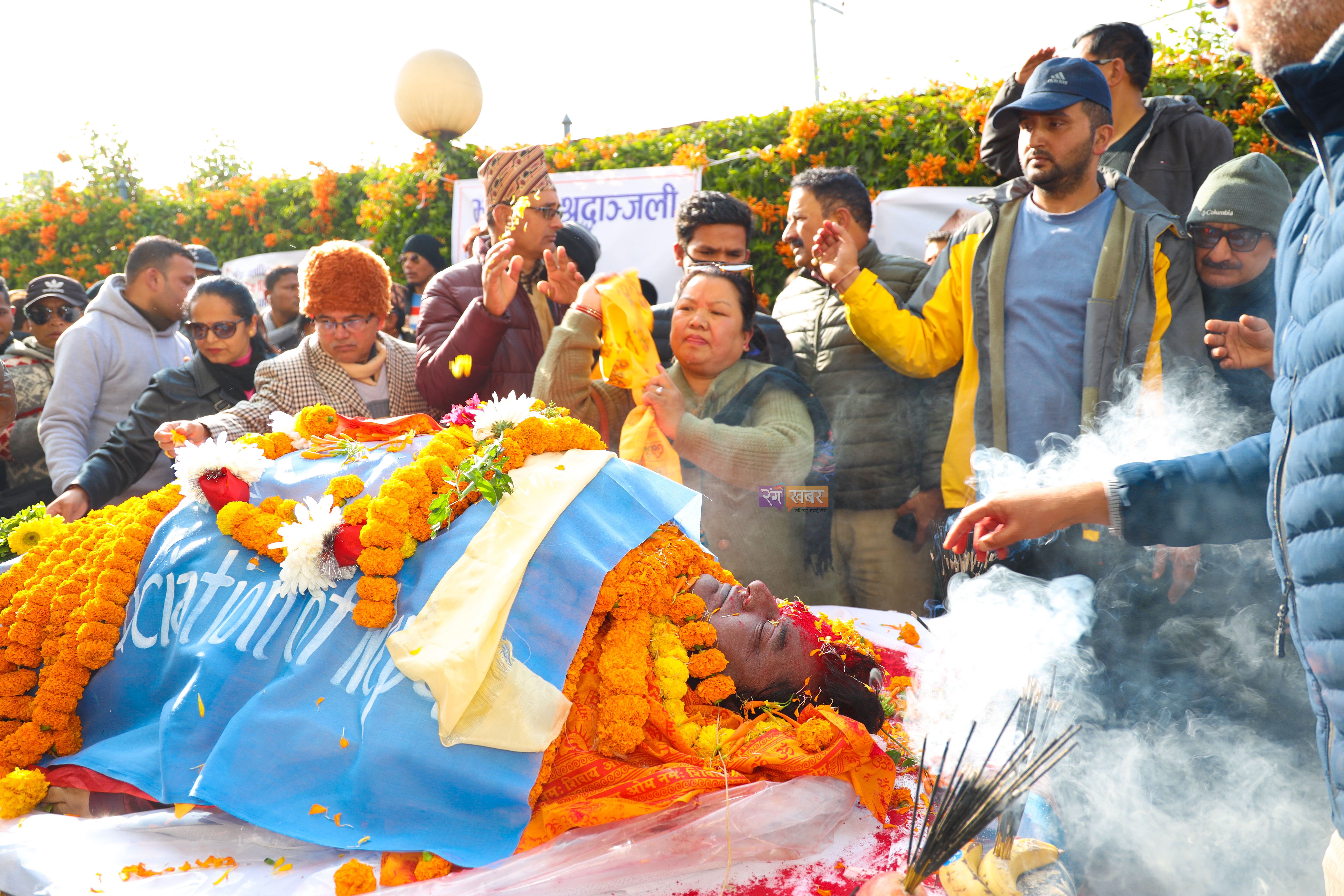 अन्तेष्टि अगाडी दुवैको पार्थिव शरीरलाई चाबहिलस्थित चलचित्र बिकास बोर्डको प्रांगणमा श्रद्धाञ्जलीका लागि राखिएको थियो । उप-प्रधानमन्त्री तथा रक्षा मन्त्री इश्वर पोखरेलसँगै सिनेमा क्षेत्रका व्यक्तित्व र परिवारले बोर्ड प्रांगणमा अन्तिम श्रद्धाञ्जली दिएका थिए ।