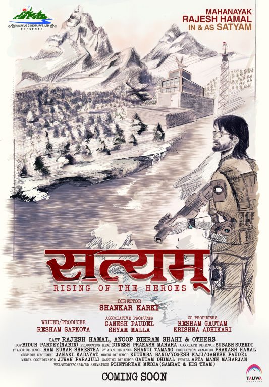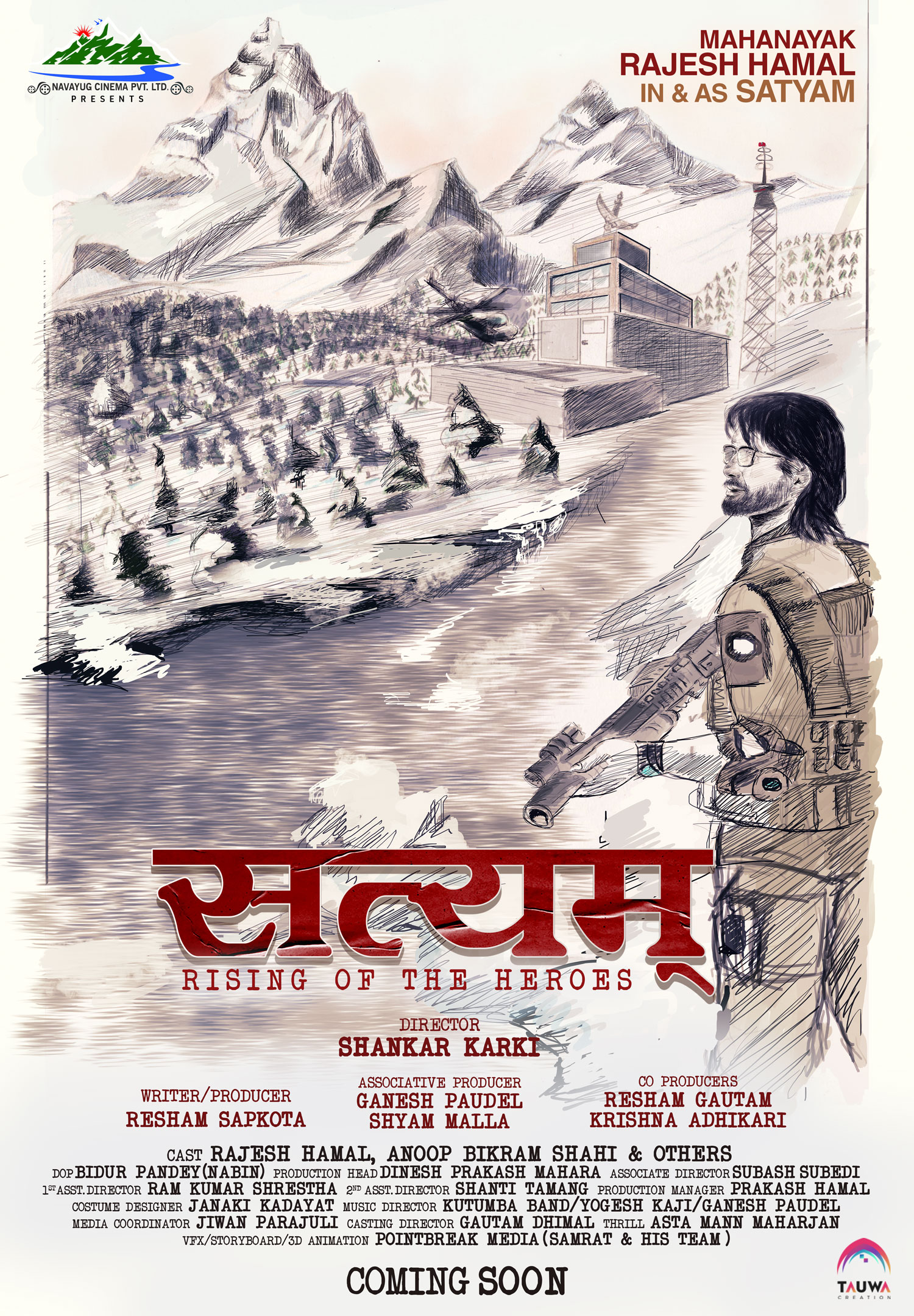 निर्माण पक्षले ‘सत्यम’को ‘थिमेट्रीकल स्केच’ सार्वजनिक गर्दै कास्टिङ अडिसन पनि आव्हान गरेको छ । स्केचमा अभिनेता हमाललाई प्रस्तुत गरिएको छ । लडाकु पोशाकमा उनले बन्दुक समातेका छन् ।