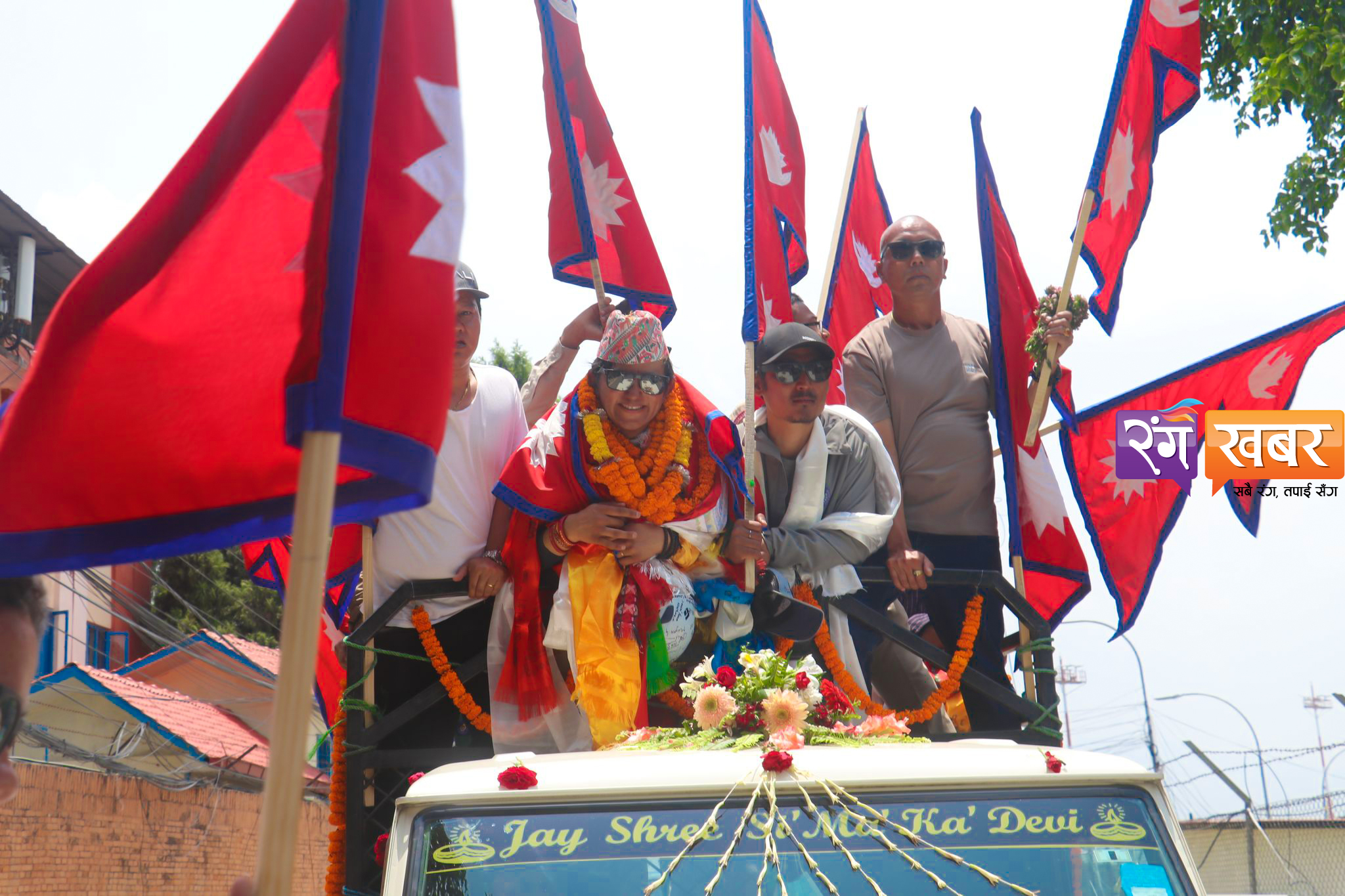 रंगखबर, काठमाडौँ – विश्वको सर्वोच्च शिखर सगरमाथाको सफल आरोहण गरेका गायक राजु लामालाई राजधानीमा भव्य स्वागत गरिएको छ ।