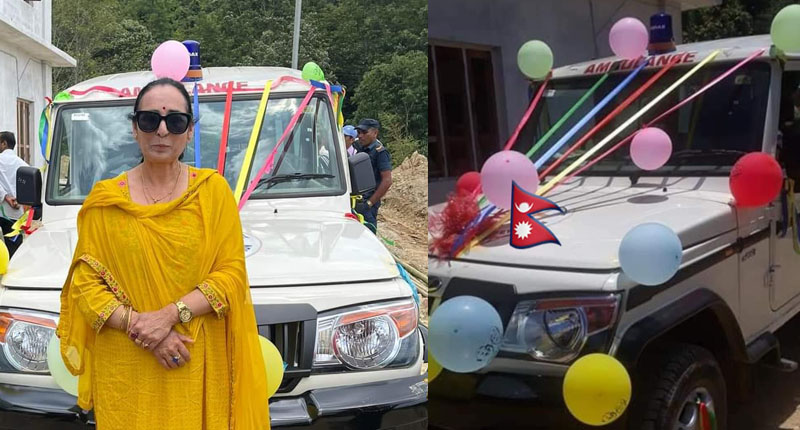 रंगखबर, काठमाडौँ : मोडल तथा नायिका एलिजा गौतमकोले तेह्रथुम जिल्लाको फेदाप गाउँपालिकाका लागि निशुल्क प्रयोग गर्ने गरि एम्बुलेन्स प्रदान गरेकी छन । पुर्ख्यौली घर तेह्रथुम नै रहेको र त्यहाँका सर्वसाधारणलाई थोरै भएपनि राहत महसुस गराउने उदेश्यले एलिजा फाउन्डेसनको संयोजनमा एम्बुलेन्स प्रदान गरिएको हो।