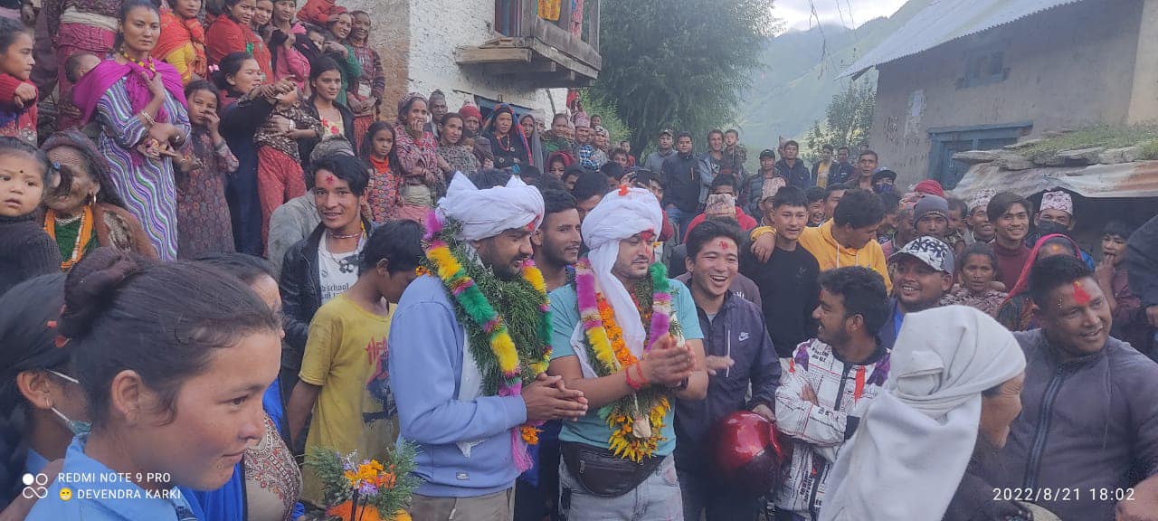 प्रदीप र बिकासलाई स्थानीय बासिले गरेको स्वागत हेर्न लायक थियो । स्थानीय संस्कार अनुसार जुम्लेली समुदायले प्रदीप र बिकासको गलामा माला, निधारमा अबिर र शीरमा फेदा लगाइदिएका थिए ।