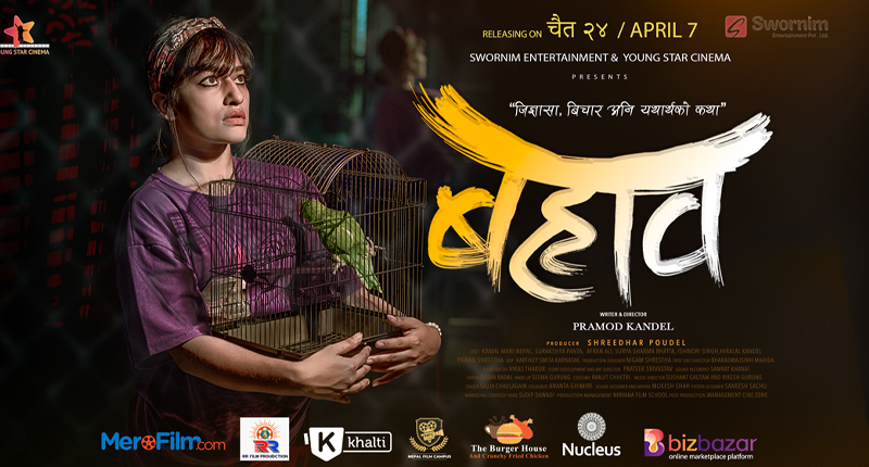 रंगखबर, काठमाडौँ: सुरक्षा पन्तको मुख्य भूमिका रहेको फिल्म ‘बहाव’को फस्टलुक पोस्टर सार्वजनिक गरिएको छ। सार्वजनिक पोस्टरमा अभिनेत्री सुरक्षाले सुँगासहितको पिँजडालाई हातमा लिएर उभिएकी छन् । पोस्टरमा सुरक्षाले पृष्ठभूमिमा देखिएको ऐनामा नहेरी हातमा रहेको पिँजडाभित्रको सुँगामा आफ्नो प्रतिबिम्ब खोजिरहेको देख्न सकिन्छ । फिल्मको विषयवस्तु ‘जिज्ञासा, विचार अनि यथार्थको कथा’ मा आधारित छ ।