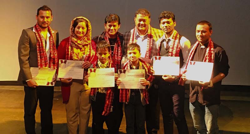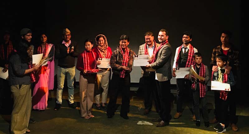 रंगखबर, काठमाडौँ: नेपाली सेनाले आयोजना गरेको लघु चलचित्र प्रतियोगितामा पुरस्कृत हुन सफल लघु चलचित्रहरु ‘कस्तुरी’, ‘डोल्मा’ र ‘सेनाको सन्तति’को विशेष शो सम्पन्न भएको छ। रातोपूल स्थित ओजस थिएटरमा भएको विशेष प्रदर्शनीमा दर्शकहरुको बाक्लो उपस्थिति रहेको थियो। कार्यक्रममा ३ वटै फिल्मका कलाकार तथा प्राविधिकहरुलाई प्रमाण पत्र तथा खादाले सम्मान पनि गरिएको थियो। कलाकार तथा प्रशिक्षक बिरेन्द्र हमालले तिन वटै फिल्मका टिमलाई सम्मान सहित शुभकामना दिएका थिए।