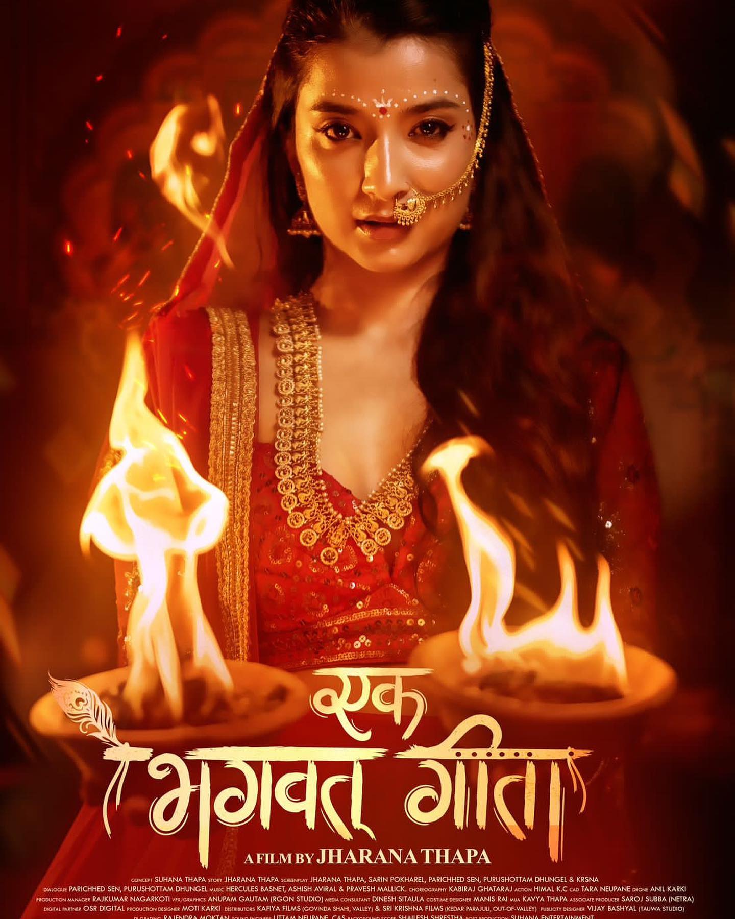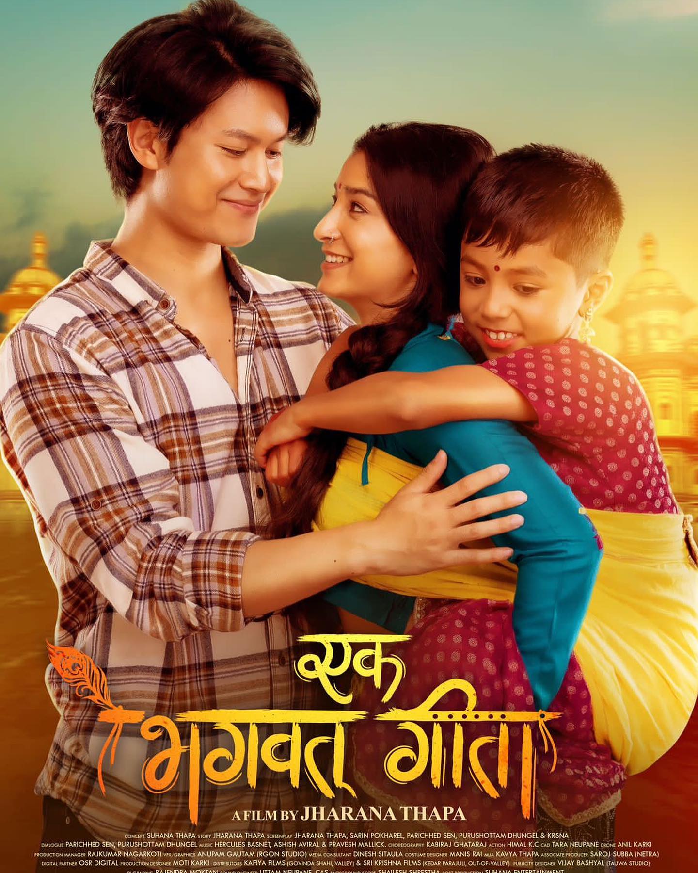रंगखबर, काठमाडौँ: केही दिन अघि टिजर सार्वजनिक गरेर चर्चामा रहेको फिल्म ‘एक भगवत् गीता’को फस्ट लुक पोस्टर सार्वजनिक गरिएको छ। टिजर सार्वजनिक गर्दै प्रमोसनलाई जोड दिएको फिल्मका निर्माण टिमले फस्ट लुक पोस्टर सार्वजनिक गरेसँगै प्रचारलाई अझ तीव्र बनाएका हुन्। सार्वजनिक तिन पोस्टरमा फिल्मका मुख्य पात्रहरू विपिन कार्की, सुहाना थापा, धिरज मगर र बाल कलाकारलाई केन्द्रमा राखिएको छ।