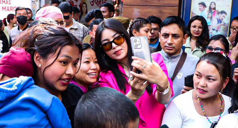 अभिनेत्री पूजा शर्मा फिल्म रिलिज भएपछि हरेक दिन दर्शकको प्रतिक्रिया बुझ्न हल–हल पुगिरहेकी छन् । यही क्रमलाई निरन्तरता दिँदै उनी सोमबार फिल्मको टिमसहित बनेपाको शुभकामना हल पुगेकी हुन् । शुक्रबार र शनिबार उपत्यकाका हलमा दर्शकमाझ अन्तरक्रिया गरेकी पूजा सोमबार बनेपा पुगेकी हुन् ।