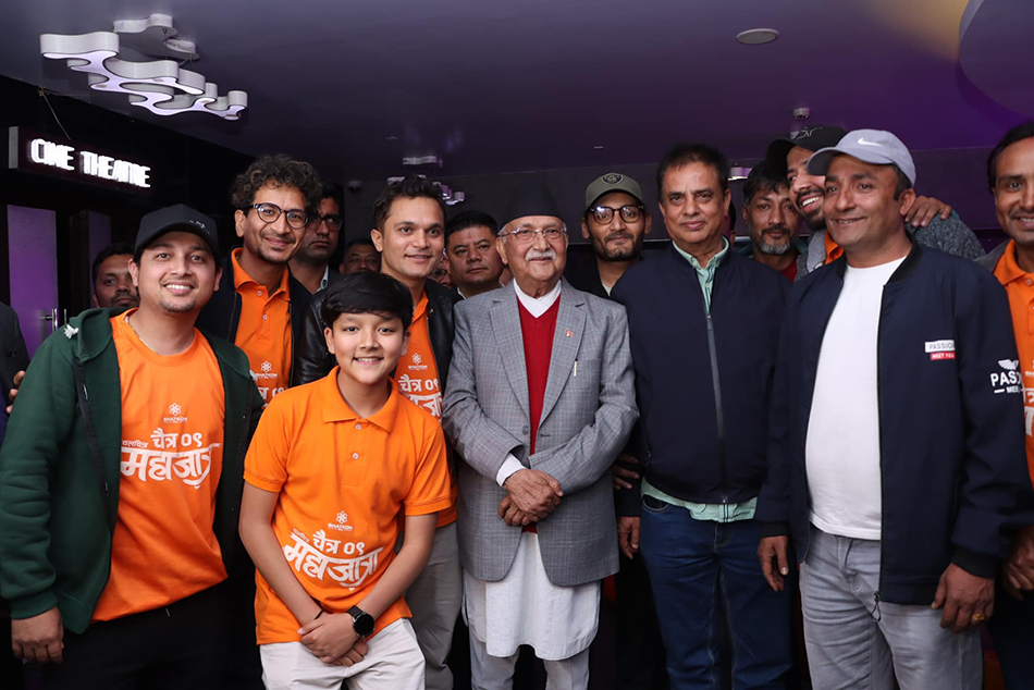 रंगखबर, काठमाडौँ : नेकपा (एमाले) का अध्यक्ष तथा पूर्वप्रधानमन्त्री केपी शर्मा ओलीले फिल्म ‘महाजात्रा’ हेरेका छन् । सोमबार बेलुकी सुन्धारास्थित सिने डी सेफमा श्रीमती राधिका शाक्यसहित नेताहरूको साथमा फिल्म हेर्न पुगेका हुन् । ओलीले भरपुर इन्जोय गरेको बताए साथै उनले फिल्म हेरेपछि १० मा ९.५ रेटिङ समेत दिएका छन् ।।
