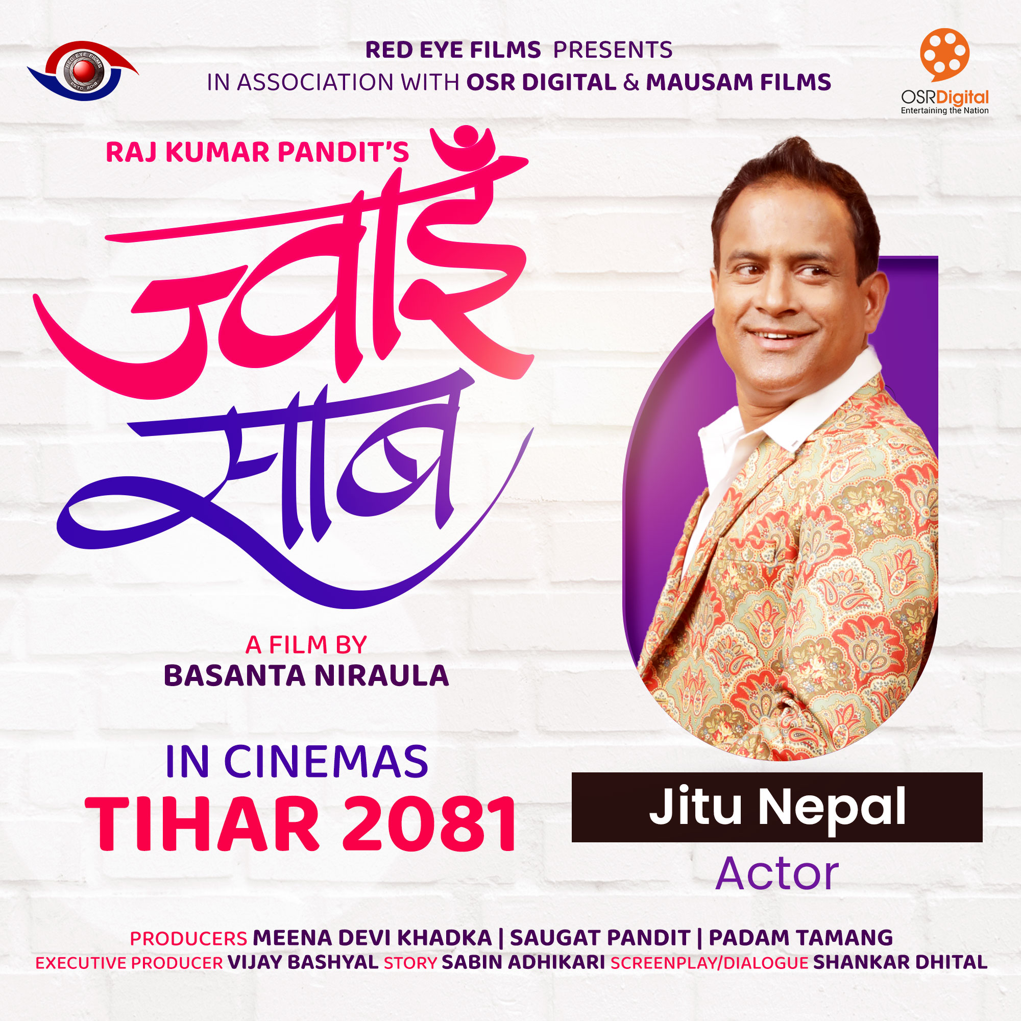 रंगखबर, काठमाडौँ: रेड आई फिल्मस्को प्रस्तुति, ओएसआर डिजिटल र मौसम फिल्मस्को सहकार्यमा निर्माण हुन लागेको फिल्म ‘ज्वाइँ साब’को केन्द्रिय भूमिकामा कलाकार जितु नेपाल अनुवन्धित भएका छन् । राज कुमार पण्डितको निर्माणमा तयार हुन लागेको यो फिल्मका लागि जितुसँग निर्माणपक्षले कागजी संझौता गरेको हो । सामाजिक कथावस्तुलाई कमेडी शैलीमा भन्न लागिएकाले पनि जितु नेपाललाई फिल्मको मुख्य भूमिकामा अनुवन्धित गरिएको निर्माता राजकुमार पण्डितले जानकारी दिए ।