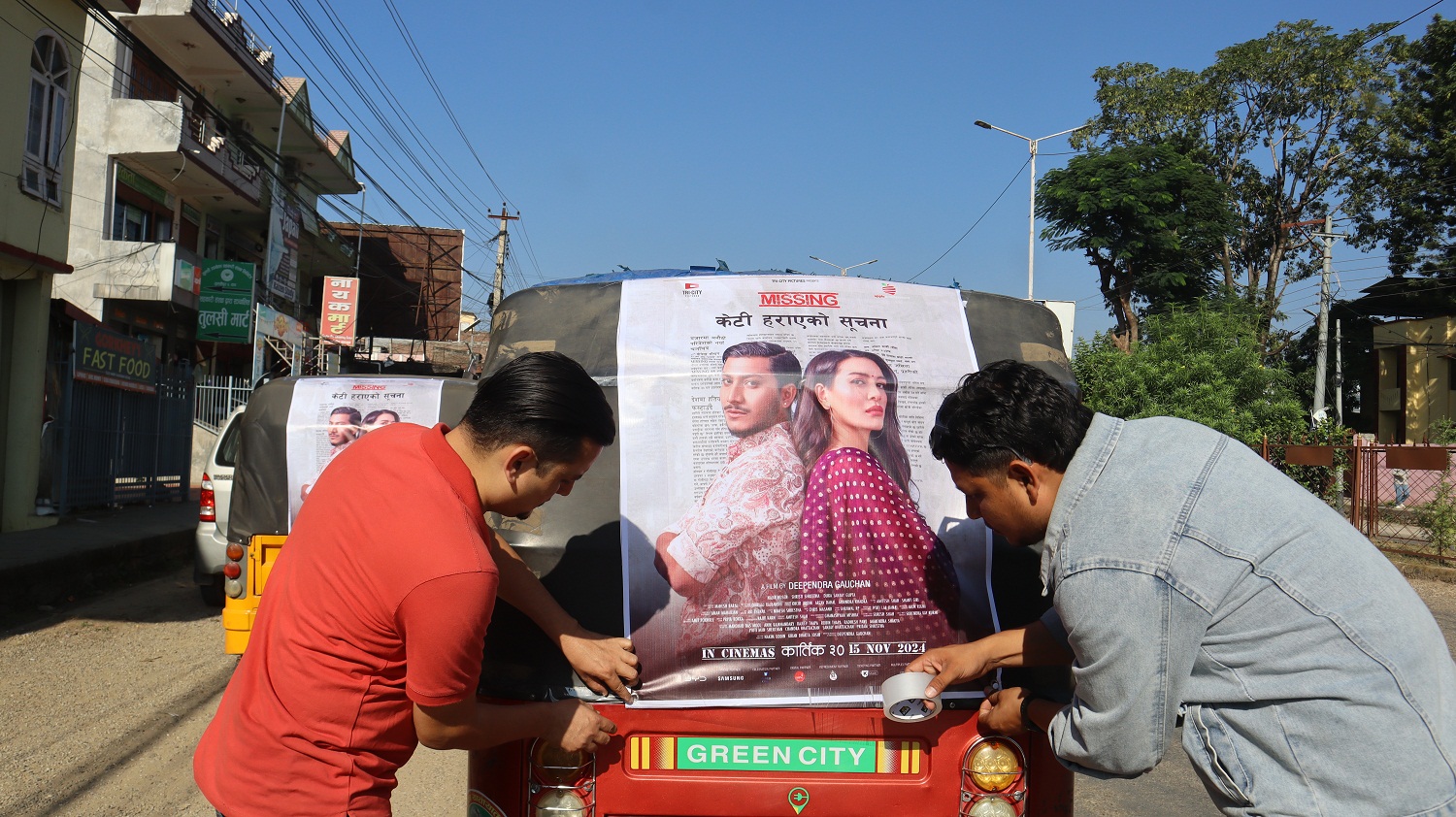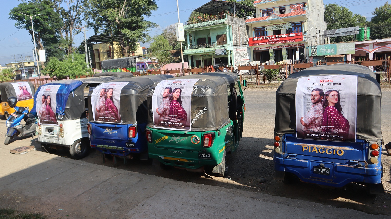 रंगखबर, काठमाडौँ: यही कार्तिक ३० गतेबाट रिलिज हुने फिल्म ‘मिसिङः केटी हराएको सूचना’को उपत्यकाबाहिर प्रचारप्रसार सुरु भएको छ । देशका प्रमुख सहरका करिब ६ सय अटोमा फिल्मका नायक नाजिर हुसेन र नायिका सृष्टि श्रेष्ठ अंकित पोस्टर टासेर प्रचारप्रसारको सुरुवात गरिएको हो ।