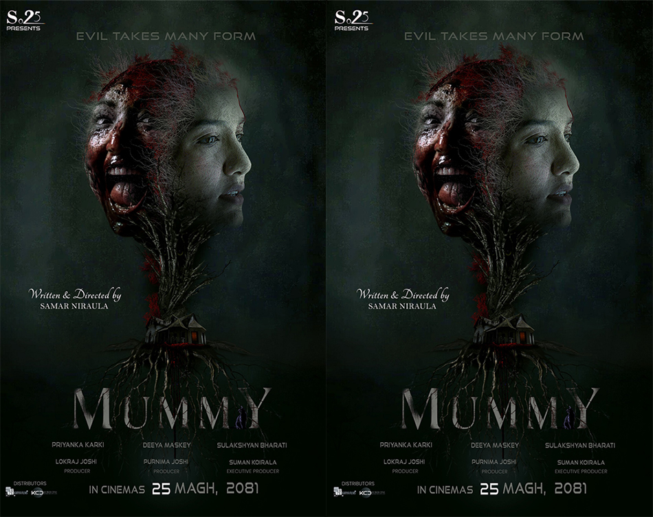 रंगखबर, काठमाडौँ: प्रियंका कार्की र दीया मास्केको मुख्य भूमिका रहेको हरर फिल्म ‘मम्मी’को फस्टलुक पोस्टर रिलिज गरिएको छ। निर्माण टिमले फस्टलुक पोस्टर रिलिज गर्दै फिल्मको रिलिज डेटपनि फिक्स गरेको छ। हरर फिल्मलाई निर्माण टिमले माघ २५ गतेबाट रिलिज अर्ने घोषणा गरेको छ। सार्वजनिक पोस्टरमा अभिनेत्री दियालाई डरलाग्दो रुपमा देख्न सकिन्छ। उनको अनुहार भरि रगतै रगत देखन सकिन्छ भने अभिनेत्री प्रियंका कार्कीलाई भने गम्भीर भावमा देख्न सकिन्छ।