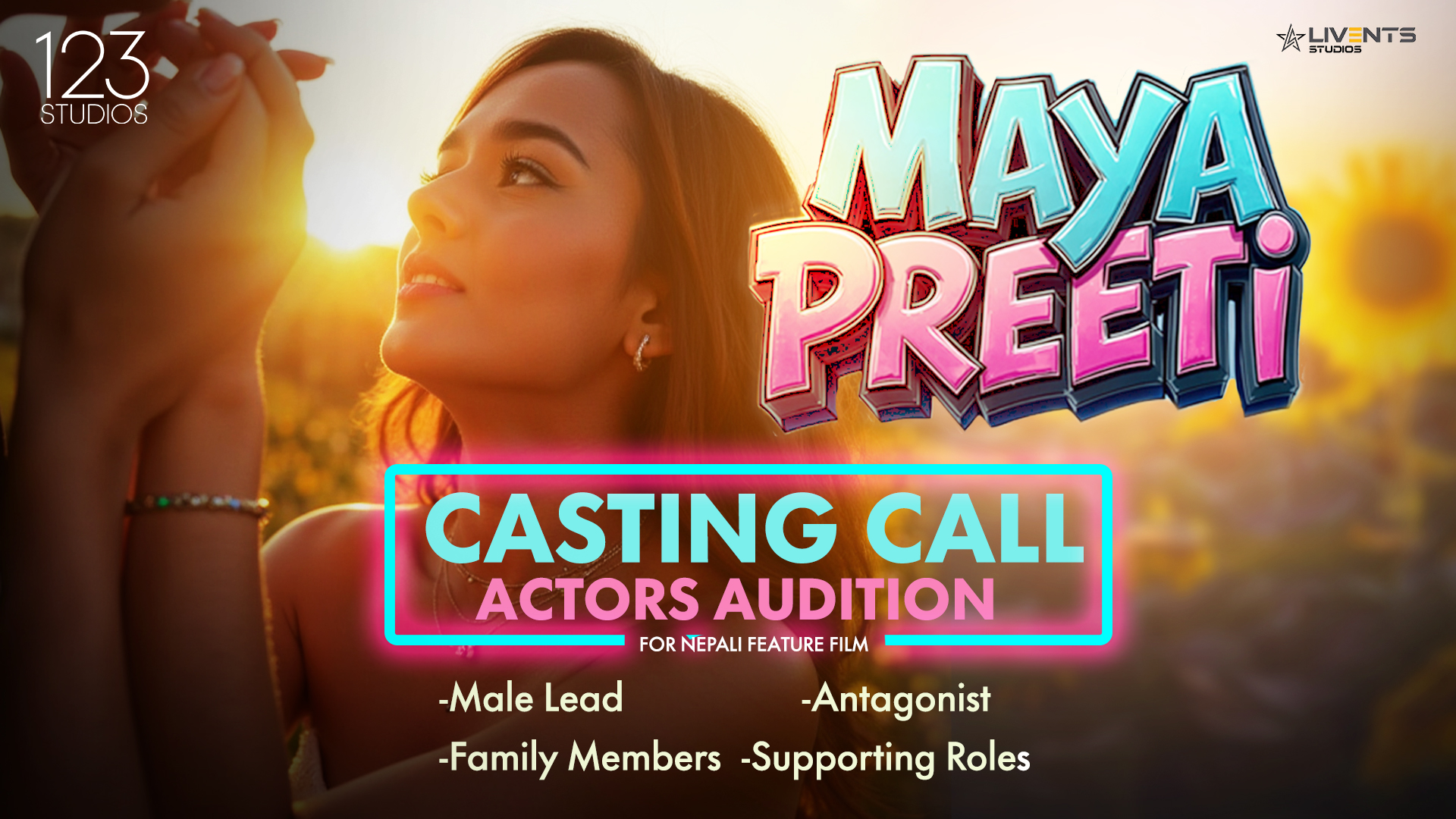 फिल्मको प्रमुख भूमिकामा अभिनेत्री दिव्या रायमाझी अनुबन्ध भइसकेकी छिन् । फिल्मको कलाकार म्यानेजमेन्ट कम्पनी लिभेन्ट्स् स्टुडियोका अनुसार यस फिल्मकी अभिनेत्री दिव्या रायमाझीको जोडीको रूपमा अभिनय गर्ने पुरुष युवा कलाकार तथा अन्य कलाकारहरूको लागि यो अडिसन आह्वान गरिएको हो । अडिसनमा सहभागी हुन ९७००६१७४३४ नम्बरमा रहेको ह्वाट्सएपमा सम्पर्क गर्न सकिनेछ । अडिसनमा सहभागिताको लागि इच्छुकले आफ्नो बायोडाटा, फोटोहरूसँगै १ देखि ४ मिनेटसम्मको अभिनयको भिडियो क्लिप पठाउनुपर्नेछ ।