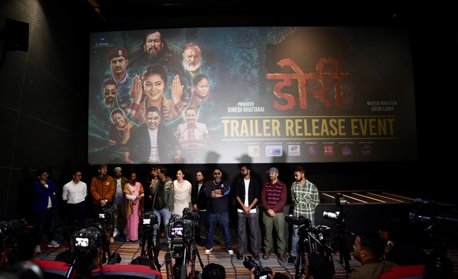 रंगखबर, काठमाडौँ: हरर कमेडी फिल्म ‘डोरी’को ट्रेलर सार्वजनिक गरिएको छ । आइतबार राजधानीमा पत्रकार सम्मेलन गर्दै निर्माण टिमले फिल्मको ट्रेलर रिलिज गरेको हो। फिल्मको ट्रेलरमा डोरीलाई शक्ति रहेको स्थितिमा सबैले खोजी गरिरहेको देखाइएको छ । सोही क्रममा आइपर्ने घटनाक्रमहरू प्रमुख रूपमा उठान गरिएको छ भने पारिवारिक तथा सामाजिक व्यवधानहरू समेत ट्रेलरमा देखिन्छ ।