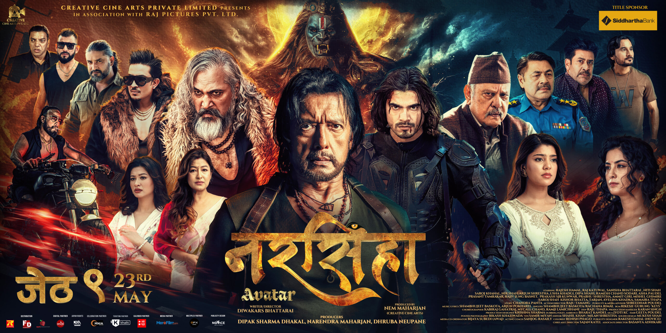 रंगखबर, काठमाडौँ: जेठको ९ गतेबाट रिलिजमा आउन लागेको फिल्म ‘नरसिंहाः अवतार’को नयाँ पोस्टर सार्वजनिक गरिएको छ । सार्वजनिक पोस्टरमा फिल्मका सबै कलाकारहरुलाई स्थान दिइएको छ ।