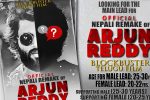 रंगखबर, काठमाडौँ : सुपरहिट दक्षिण भारतीय तेलुगु चलचित्र ‘अर्जुन रेड्डी’को नेपाली रिमेक भर्सन बन्ने चर्चासँगै यति बेला नेपाली रिमेकको लागी चलचित्र युनिट कलाकारको खोजी गरिरहेको छ । निर्माण तथा बितरणको लागी