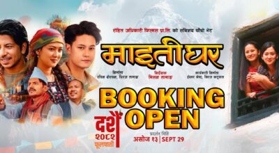 रंगखबर, काठमाडौँ: दशैंको फूलपाती अर्थात असोज १३ गतेबाट रिलिजमा आउन लागेको फिल्म ‘माइतीघर’को बुकिङ खुलिसकेको
