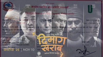 रंगखबर, काठमाडौँ: यहि २४ गते शुक्रबारबाट प्रदर्शन हुने फिल्म ‘दिमाग खराब’लाई सेन्सरले पास गरेको छ।