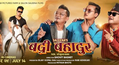 रंगखबर, काठमाडौँ: शोभित बस्नेत निर्देशित फिल्म बद्रि बहादुरको पोस्टर सार्वजनिक भएको छ। निर्माण टिमले फिल्मको