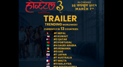 रंगखबर, काठमाडौँ: यही फागुन २३ गते रिलिज हुने तयारीमा रहेको नेपाली चलचित्र ‘होस्टेल ३’को ट्रेलर