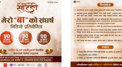 रंगखबर, काठमाडौँ: अभिनेताद्वय बिजय बराल र प्रकाश सपूत अभिनित फिल्म ‘पूर्ण बहादुरको सारङ्गी’ले भिडियाे प्रतियोगिता